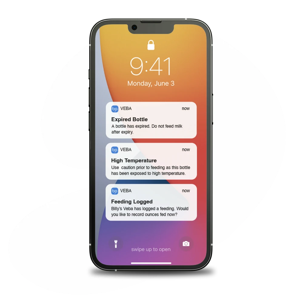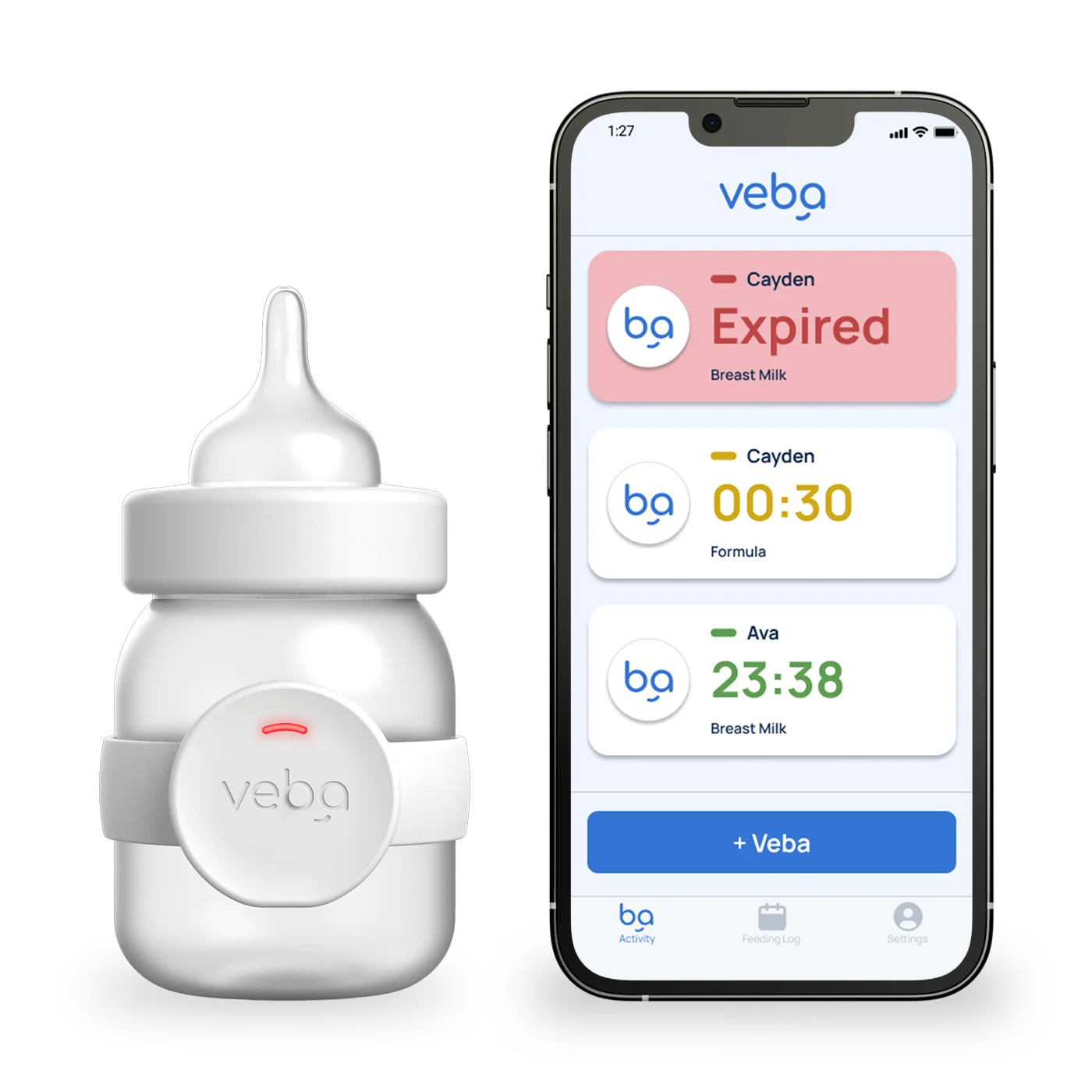 Logging feedings has never been easier. The Veba app keeps track of each bottle’s start time, expiration, your baby’s intake and the time of each feeding for you in your log!